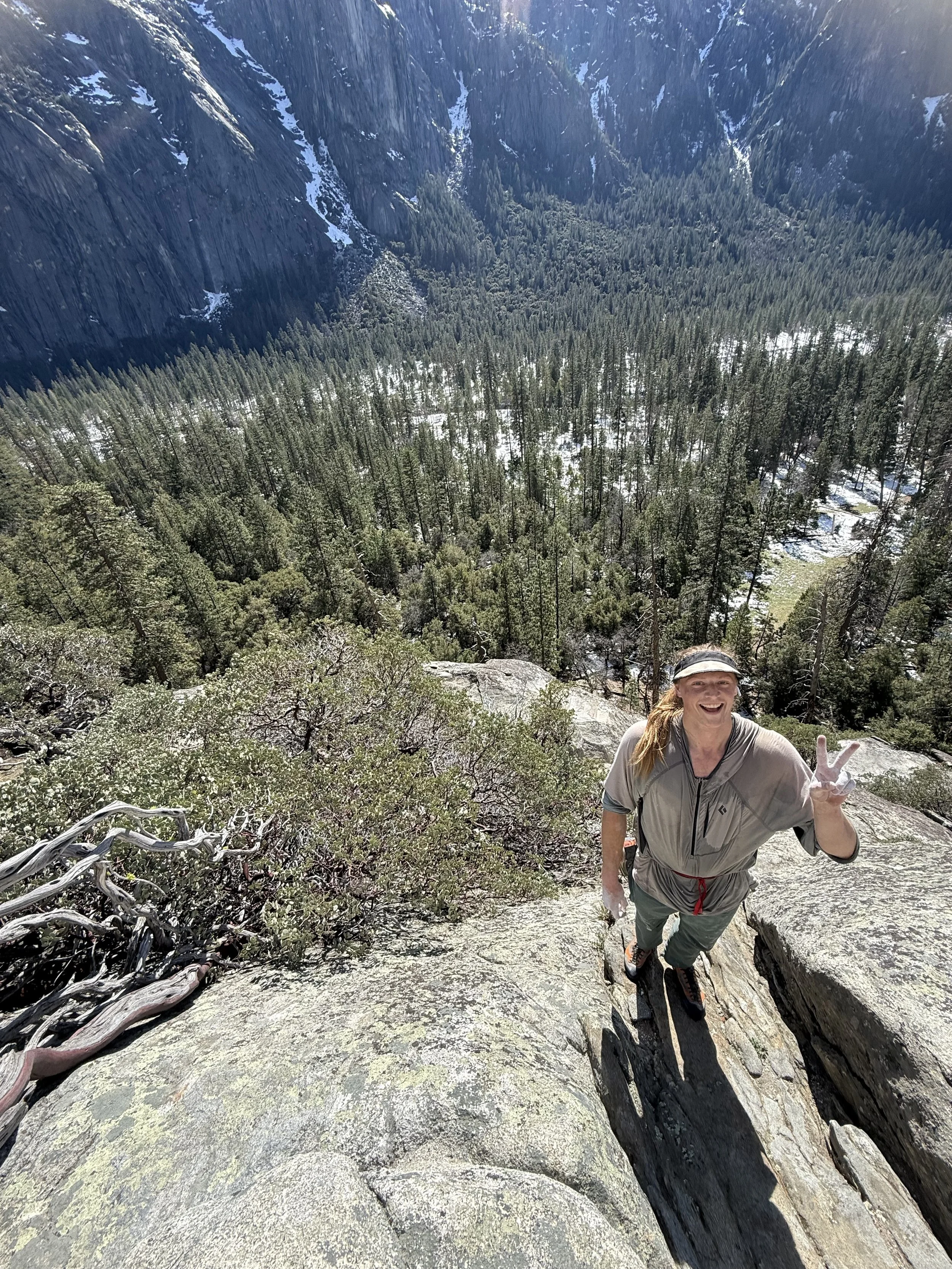 Before teaming up with Laura for the Yosemite Picnic, “We climbed some easier stuff, and we went to Tioga Cliff and did some sport climbing, and we tried Heaven a few times together at Glacier Point, and we did a lot of bouldering together.”